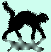 Then Shadow appeared on the roof, looked to me and suddenly leapt down - a black monster as big as the building itself. Anyone watching from the rear must've thought the whole wall was coming down on me, but all that landed beside me was a shrinking outline and a small black cat with a fluffy tail.
